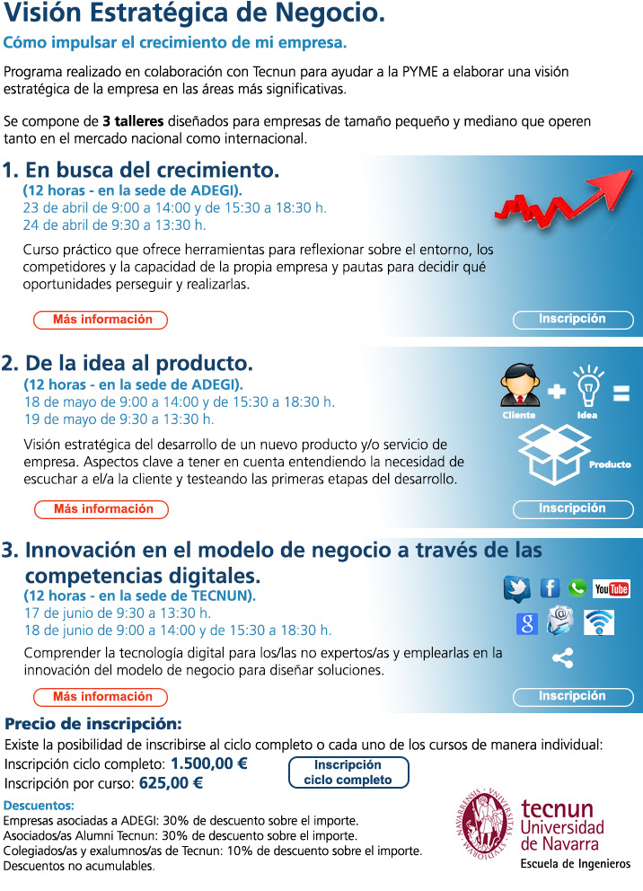 La semana que viene imparto el taller «En busca del crecimiento» en ADEGI. El taller lo hemos preparado desde Tecnun – Departamento de Organización Industrial y ADEGI. Para impartirlo, estaremos la doctora Carmen Jaca y yo.